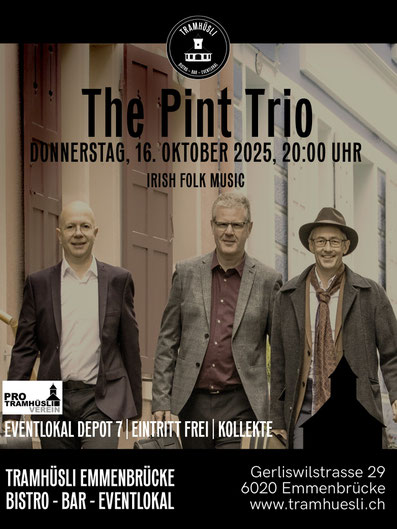 Donnerstag, 16. Oktober 2025 | Konzert The Pint Trio; Irish Folk, Depot 7 |