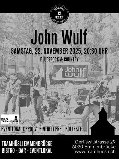 Samstag, 22. November 2025 | Konzert John Wulf; Bluesrock & Country, ab 20.30 Uhr Depot 7 |