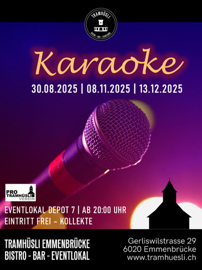 Der Karaoke-Abend im Depot 7! Egal, ob du sonst nur unter der Dusche singst oder bereits Soloerfahrung aus dem Kirchenchor hast: Karaoke ist Singen für alle. Wir feiern auch die schiefen Töne und verzeihen Taktlosigkeiten. Pack deine Freunde ein und komm vorbei für einen Abend voller Party und Spass. Das Tramhüsli-Team verwöhnt dich mit feinen Cocktails, frischem Bier und dem ein oder anderen Shot, um deine Nerven vor dem Auftritt zu beruhigen. Wir freuen uns auf dich.
